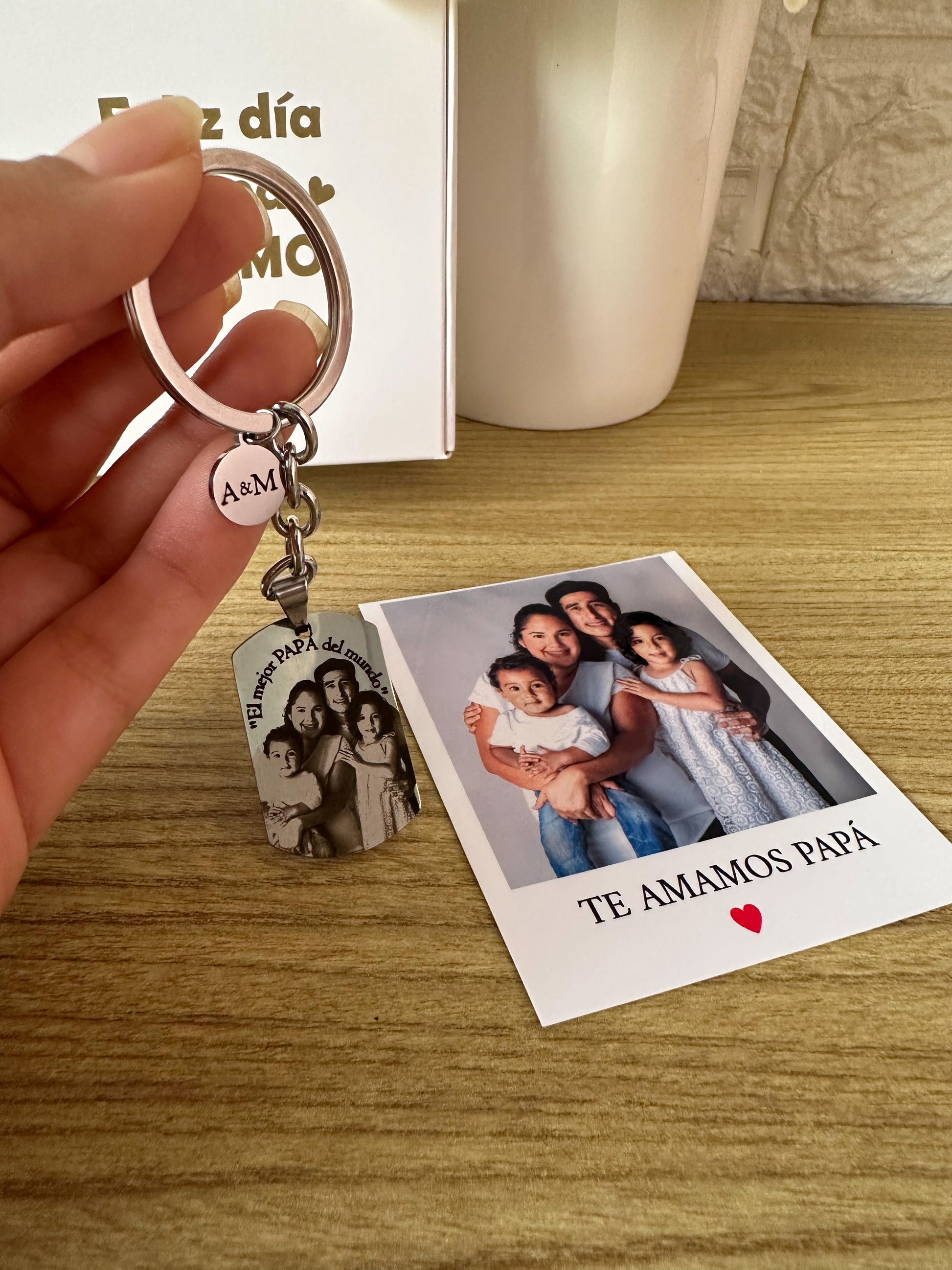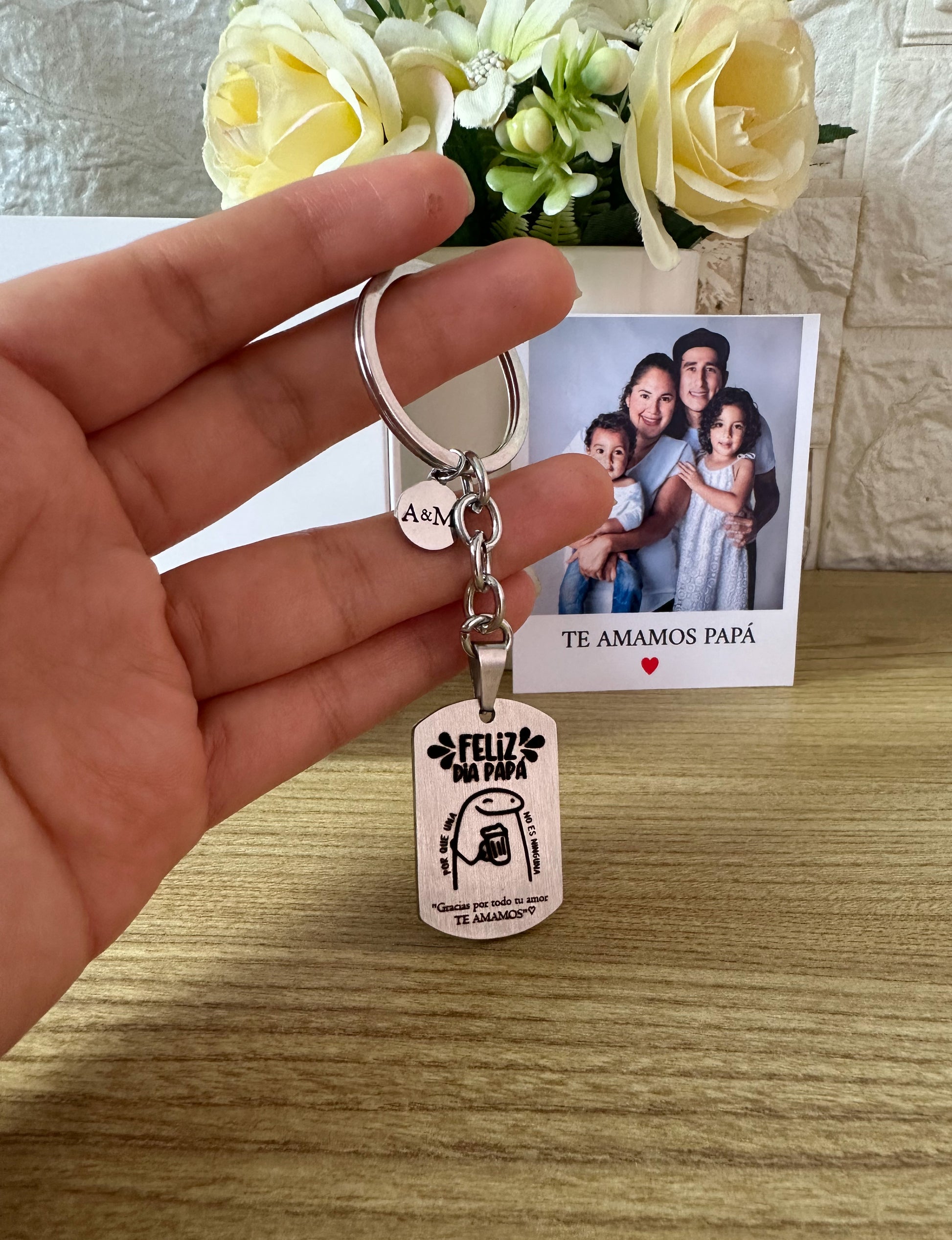Llavero en acero quirúrgico inoxidable, lo grabamos con tu fotografía y frase especial favorita