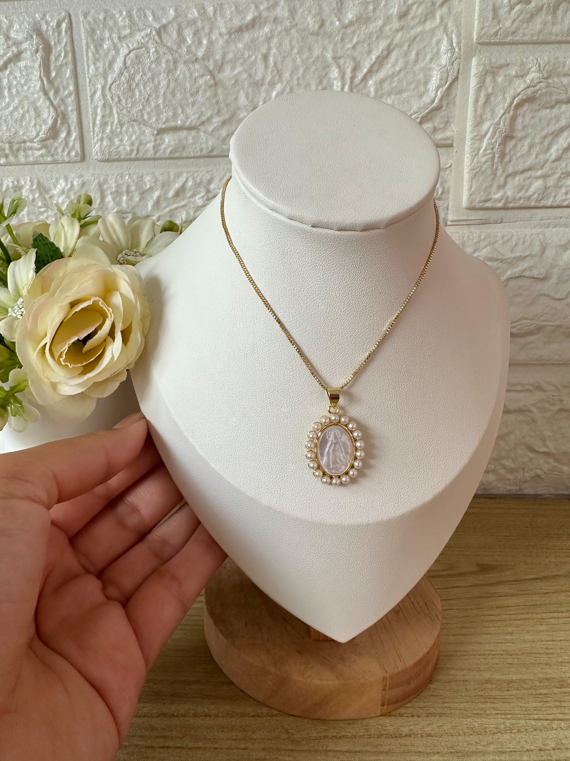 Cadena en acero quirúrgico inoxidable, dije en nácar