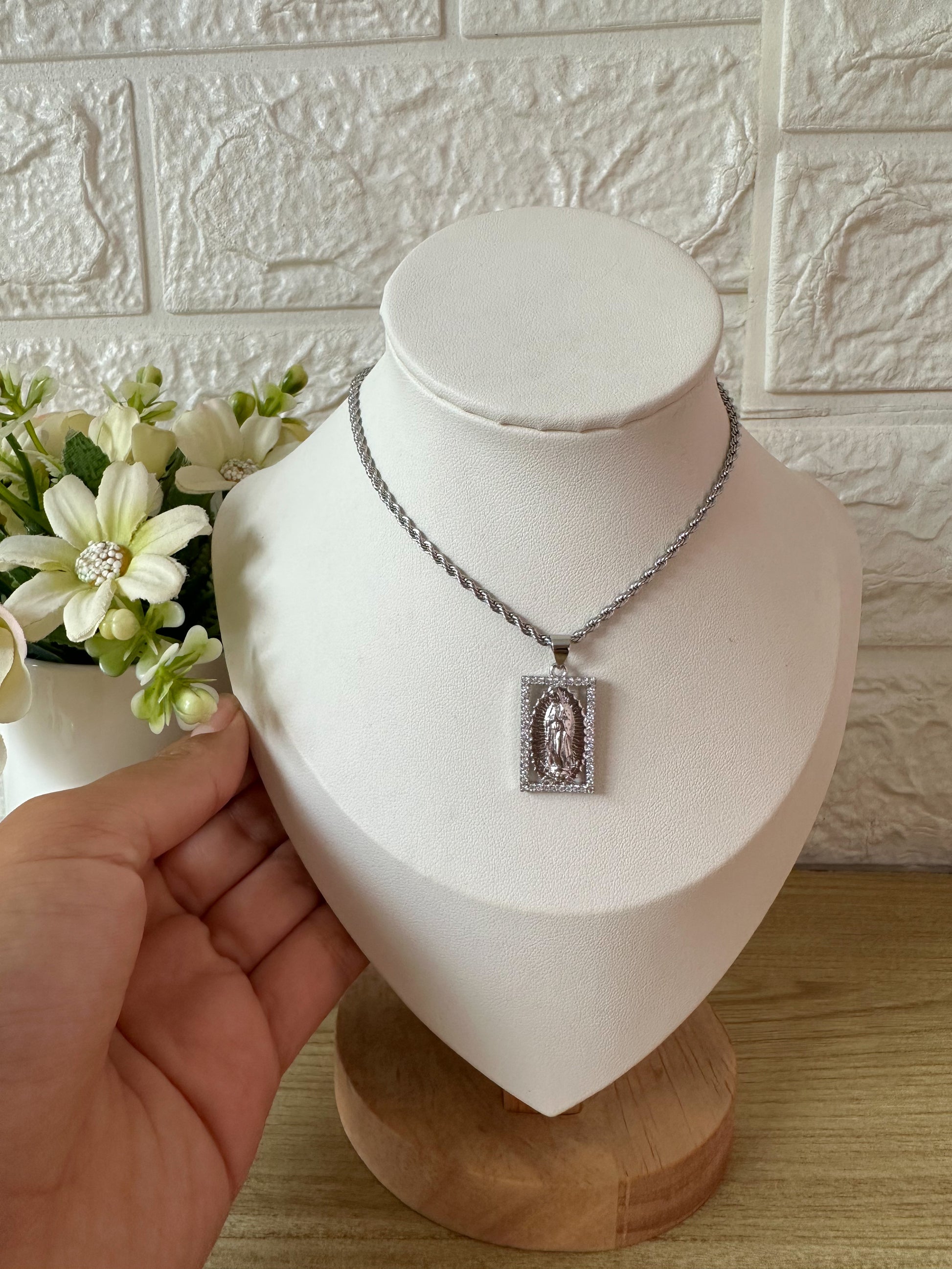 Cadena en acero quirúrgico inoxidable, dije en rodio