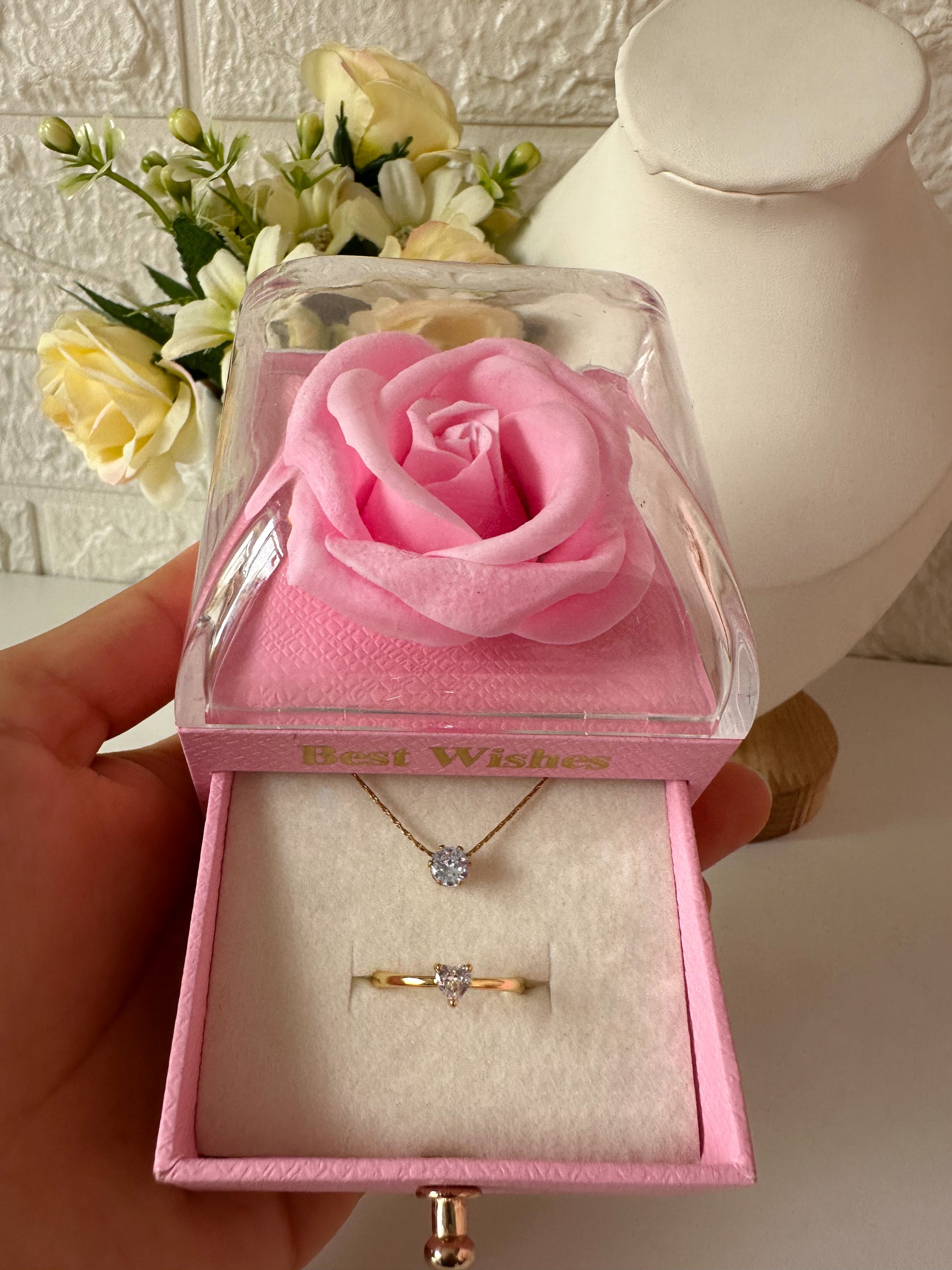 Cadena de punto de luz en acero quirúrgico, cofre de flor eterna y anillo ajustable